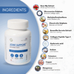 Joint Support Glucosamine Tablets provide comprehensive joint care, helping to maintain flexibility, reduce stiffness, and support overall mobility. Formulated with Glucosamine Sulphate and Chondroitin Sulphate, this supplement promotes cartilage health and enhances joint lubrication for smoother movement. MSM and Boswellia Serrata Extract work together to support flexibility and reduce inflammation, while Rose Hip Extract offers natural relief from joint discomfort. Collagen Peptide Type II aids in cartilage repair, and Hyaluronic Acid helps keep joints hydrated and cushioned. Enriched with essential minerals like Copper, Manganese, Sodium, and Potassium, this advanced formula delivers complete joint support. Whether you’re staying active or managing daily wear and tear, Joint Support helps keep you moving with comfort and ease.