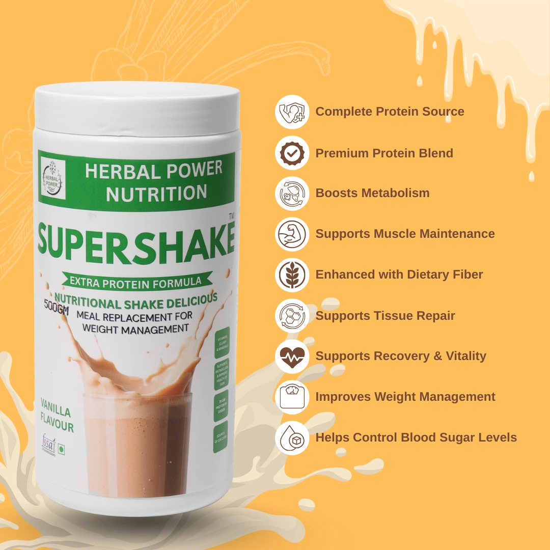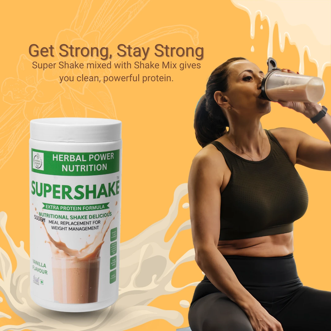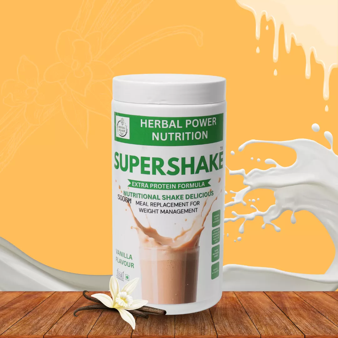 Super Shake vanilla flavour is a nutritional beverage mix developed to complement everyday diets. It provides protein, carbohydrates, dietary fibre, vitamins, and minerals as part of a balanced dietary routine.